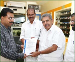 Hon. Minister for Overseas Indian Affairs Sri. Vayalar Ravi giving the first ISO 9001 - 2008 cerificate for the speciality clinic in South India